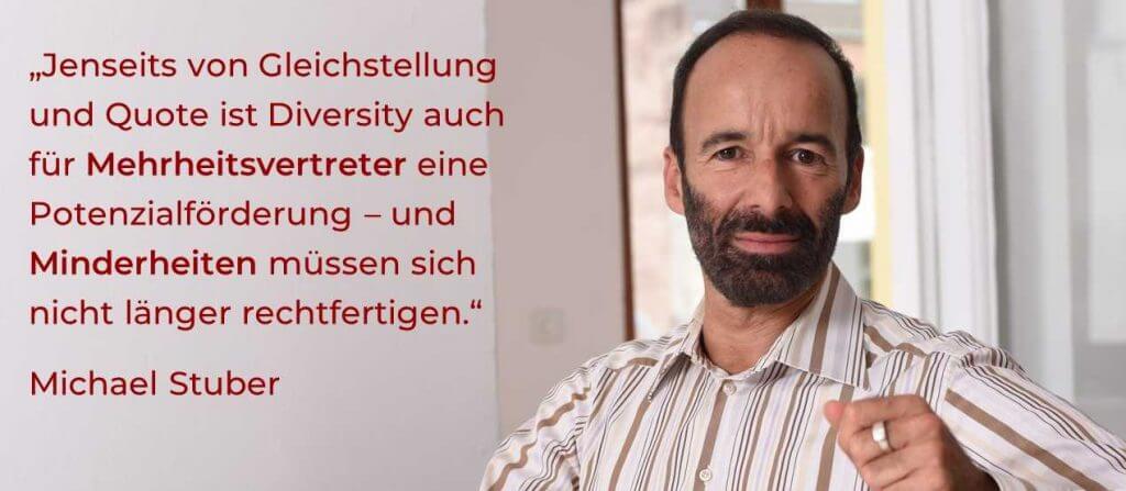 „Jenseits von Gleichstellung und Quote ist Diversity auch für Mehrheitsvertreter eine Potenzialförderung – und Minderheiten müssen sich nicht länger rechtfertigen.“ Michael Stuber